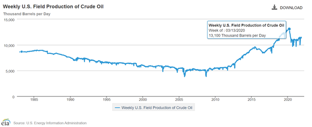 And what about US oil production? Arguably one of the most significant achievements of the Donald Trump administration was the ability to declare the U.S. was now energy independent – a dream ever since the necessity of the U.S. Strategic Petroleum Reserve became evident in the first place.