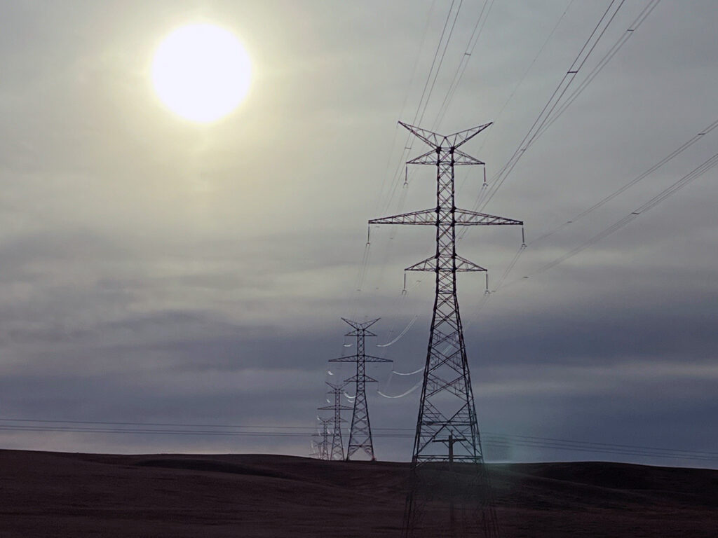 High voltage transmission lines crossing highway 1 near Medicine Hat. Photo by Brian Zinchuk