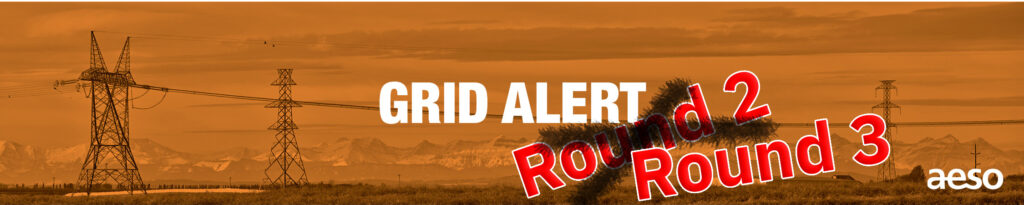 The AESO has declared a Grid Alert. Please reduce electricity consumption to essential use only, through until 8 p.m. to avoid the possibility of rotating outages. Find more information here: https://t.co/eQAHOzfzgI pic.twitter.com/3izros2wQI