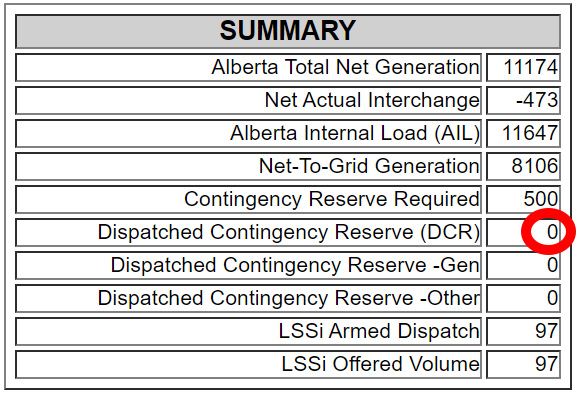 That zero highlighted was supposed to be the 500 megawatts indicated above. Alberta had nothing in the tank at that point, at 5:08 pm. AESO