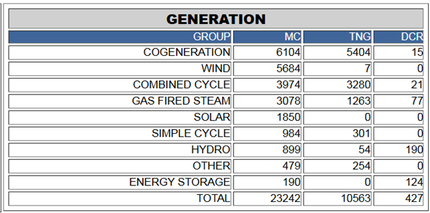 This was Alberta’s power generation at 11:15 p.m. on Nov. 26 MC is maximum capacity in megawatts, TNG is total net to grid, and DCR is dispatched and accepted contingency reserve. AESO
