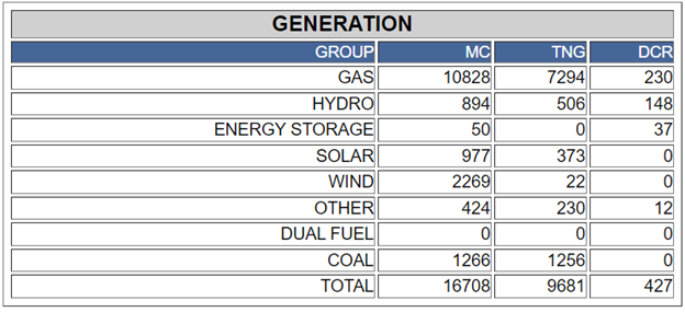 Alberta’s province’s power grid contributions at 10:16 a.m. on Wednesday, July 27. “MC” is maximum capacity in megawatts, “TNG” means total net to grid, and “DCR” is dispatched and accepted contingency reserve. Alberta Electric System Operator