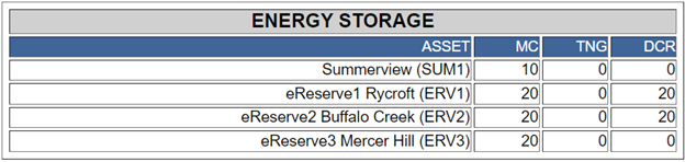 Total Alberta power generation at 12:45 p.m. on Aug. 24. MC is maximum capacity in megawatts, TNG is total net to grid, in megawatts, and DCR is dispatched and accepted contingency reserve. Alberta Electric System Operator