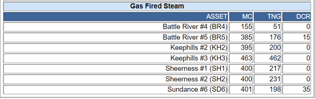 Alberta converted several of its coal plants to gas-fired steam. Here was their output: