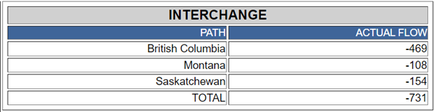 But what was filling in was power from its neighbours. In this graphic, negative values mean how many megawatts are being drawn into Alberta.