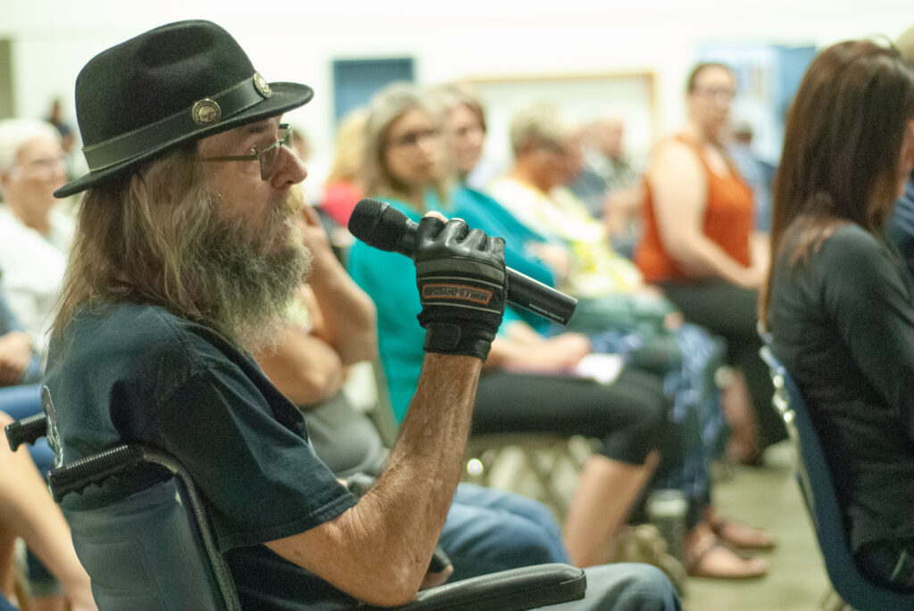 Former coal miner Murray Henderson asked about coal power. Photo by Spencer Zinchuk
