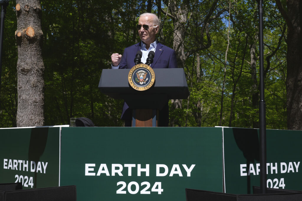 President Joe Biden speaks at Prince William Forest Park on Earth Day, Monday, April 22, 2024, in Triangle, Va. Biden is announcing $7 billion in federal grants to provide residential solar projects serving low- and middle-income communities and expanding his American Climate Corps green jobs training program. (AP Photo/Manuel Balce Ceneta)