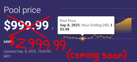 If you think tripling the maximum price of power in Alberta is insane, guess what – it’s coming by 2032. How many hour do you need at $5.98 to make up for one hour at $2999.99?