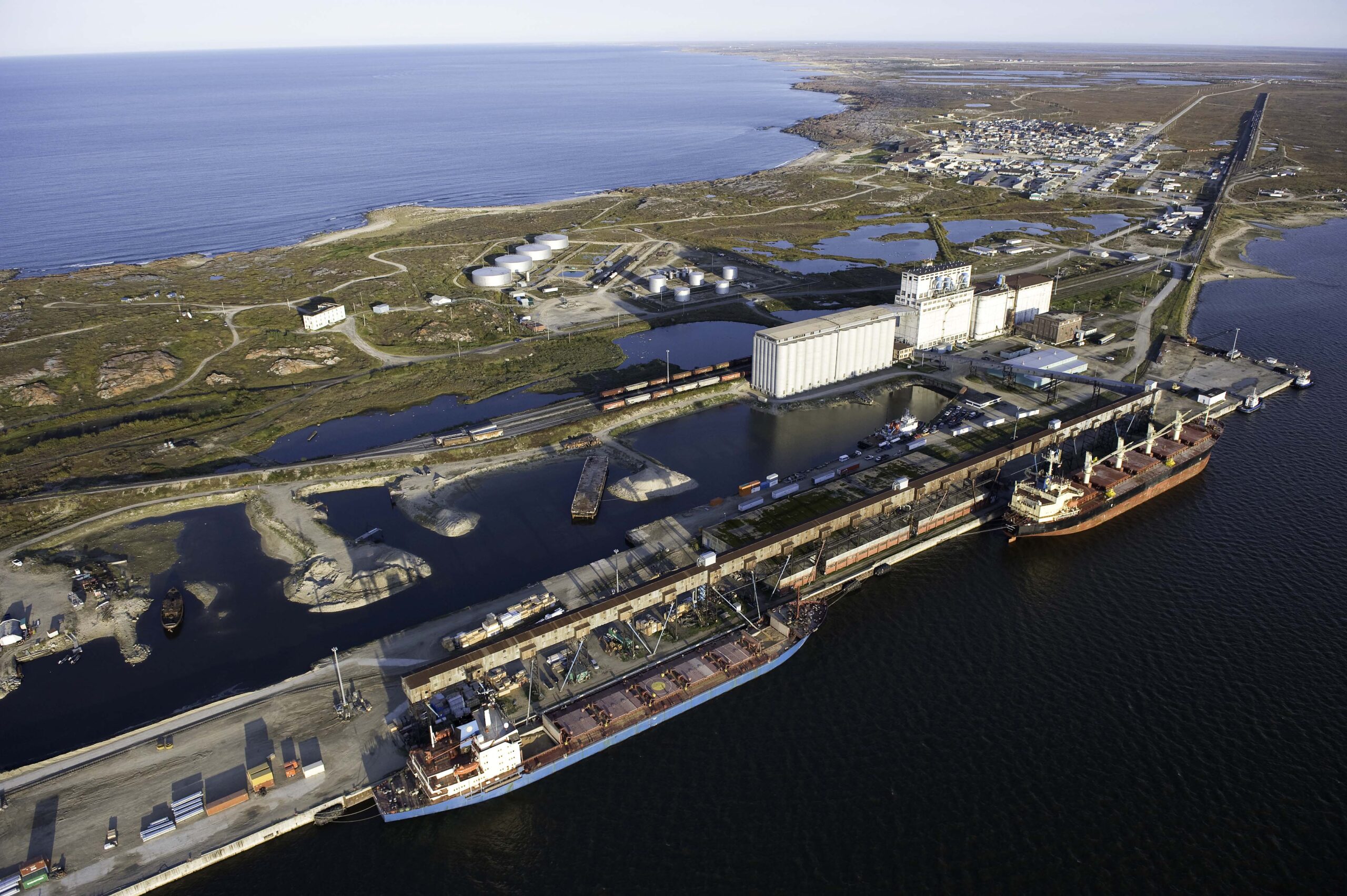 Port of Churchill, Manitoba. The tank farm needed to store half a year’s oil, at a million barrels per day, would likely cover every single inch of land seen in this photo, and then some.