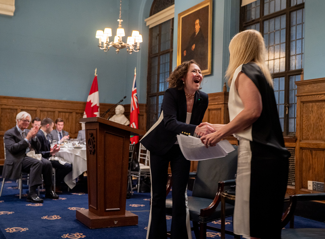 On March 5 at Toronto’s Albany Club, Bronwyn Eyre was presented with the inaugural Cartier-Macdonald award from the Canadian Constitution Foundation. The award was established to honour Canadians who have shown “exceptional leadership in advancing the principles of freedom” and “intellectual rigour and personal courage in defending democratic self-government and parliamentary supremacy.”