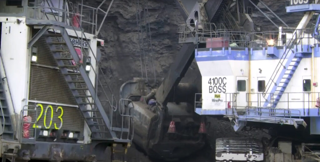 A haul truck and shovel at CNRL’s oil sands operation in northern Alberta. Screenshot/YouTube/Canadian Natural
