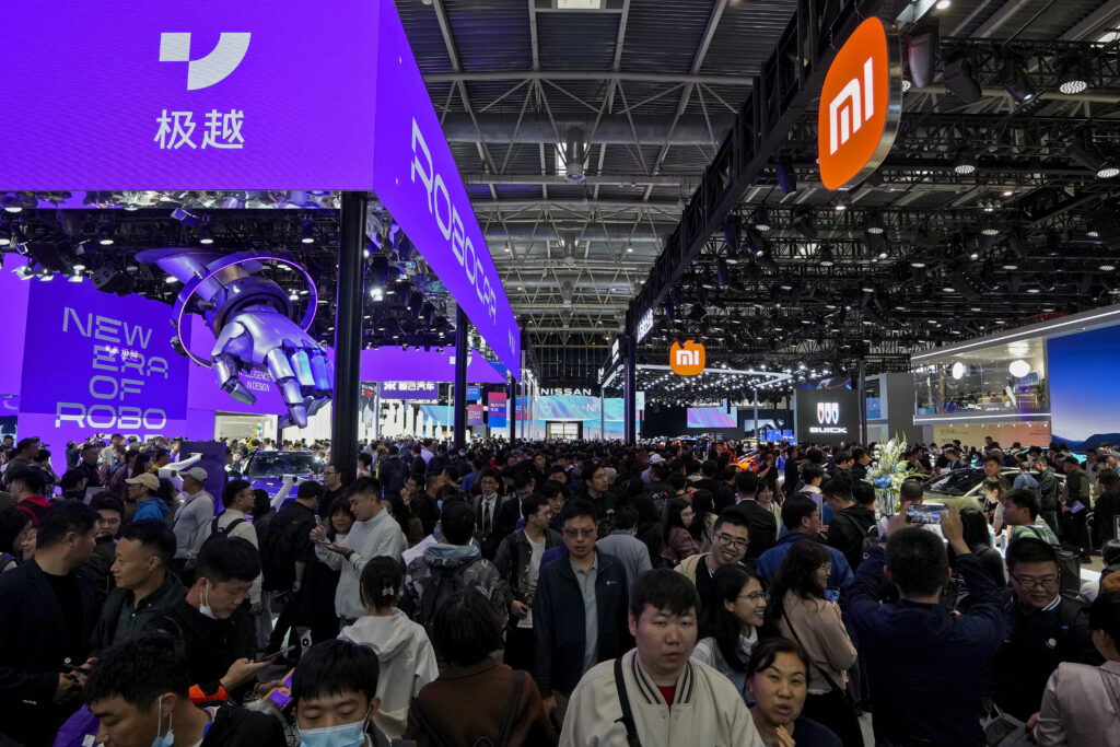 FILE – Visitors tour by local auto industries booths showcasing their latest electric cars at the Auto China 2024 in Beijing on April 28, 2024. (AP Photo/Andy Wong, File)