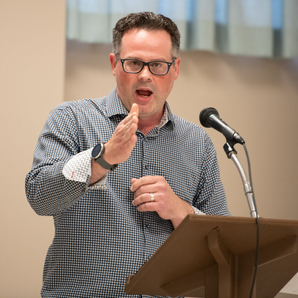 Sask United Party Leader Jon Hromek in Weyburn on July 25. Photo by Brian Zinchuk