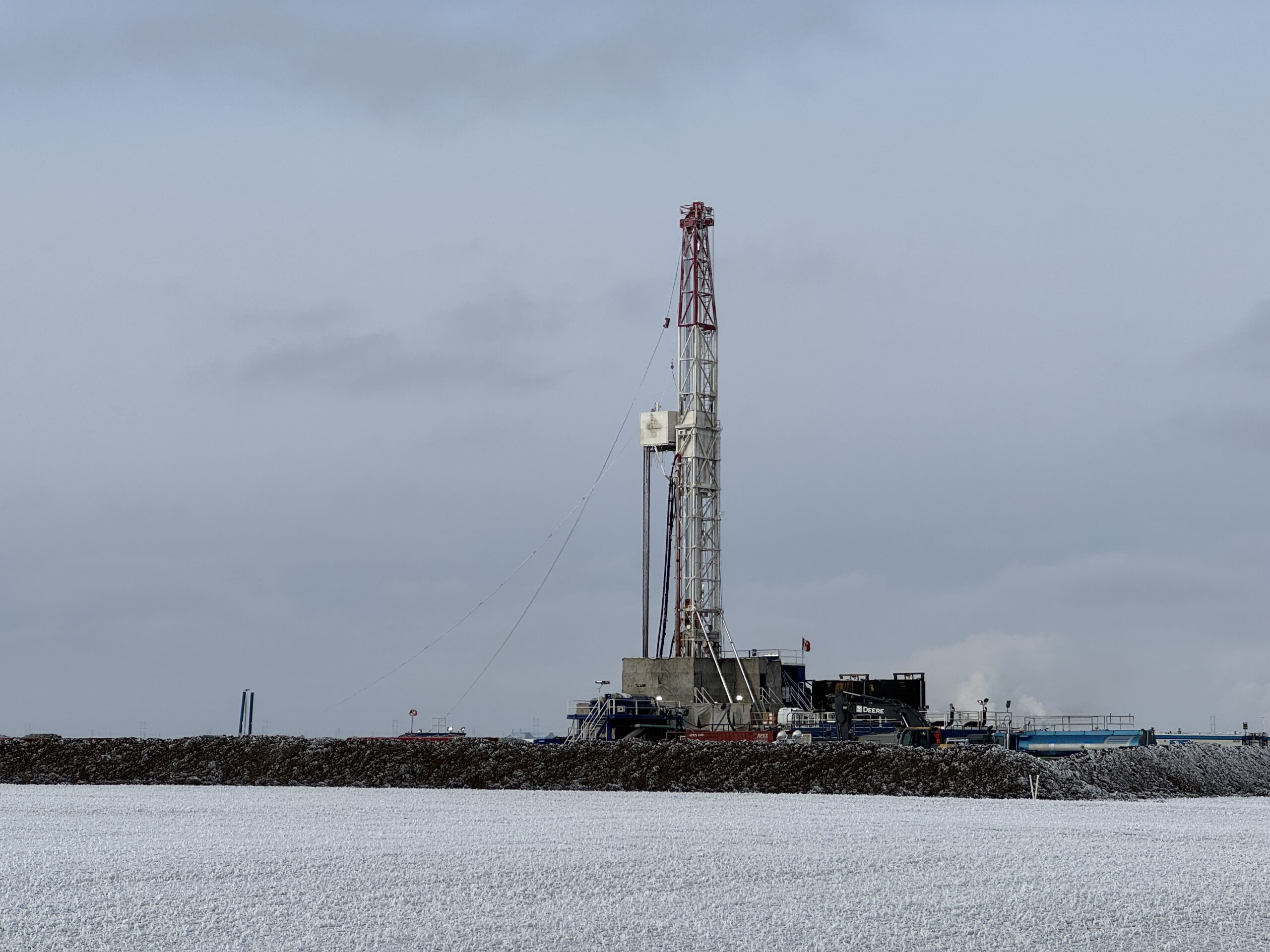 Stampede Drilling Rig 22 was drilling a CO2 well between Drinkwater and Belle Plaine on Nov. 28. Entropy Inc. took over Whitecap’s Regina carbon hub project, and is apparently drilling a second well in the Drinkwater area. Photo by Brian Zinchuk.