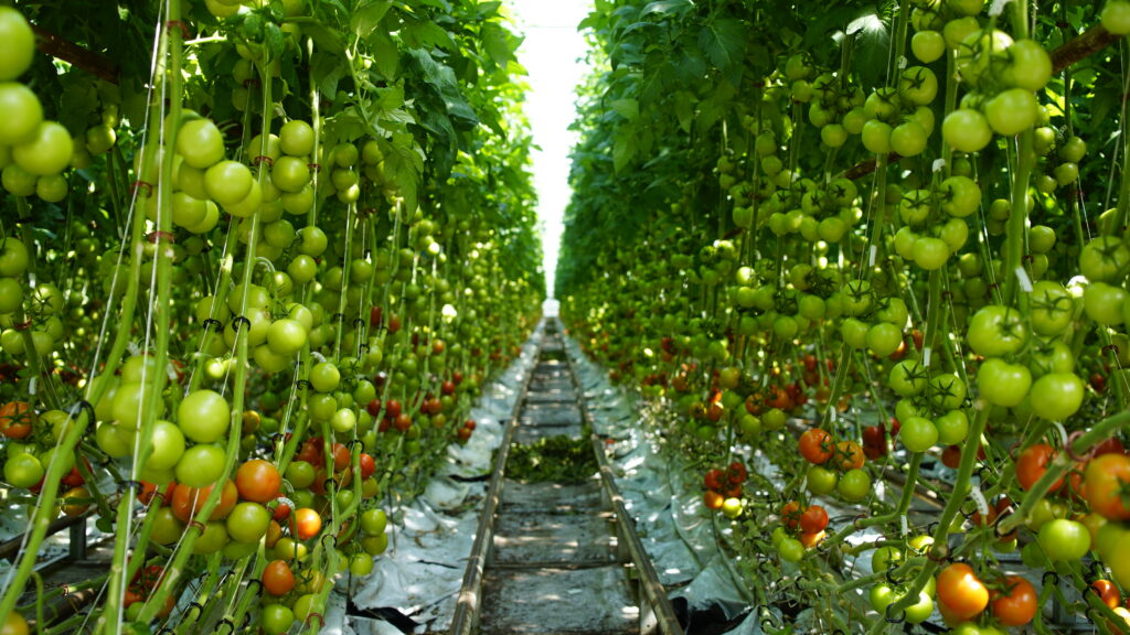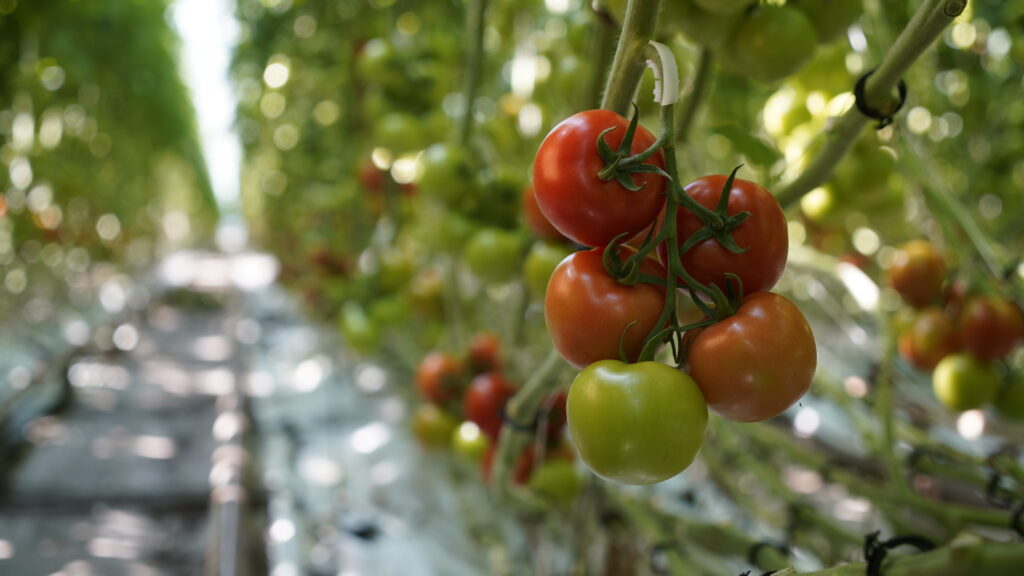 Tomatoes in an OriginO greenhouse. Oppy photo