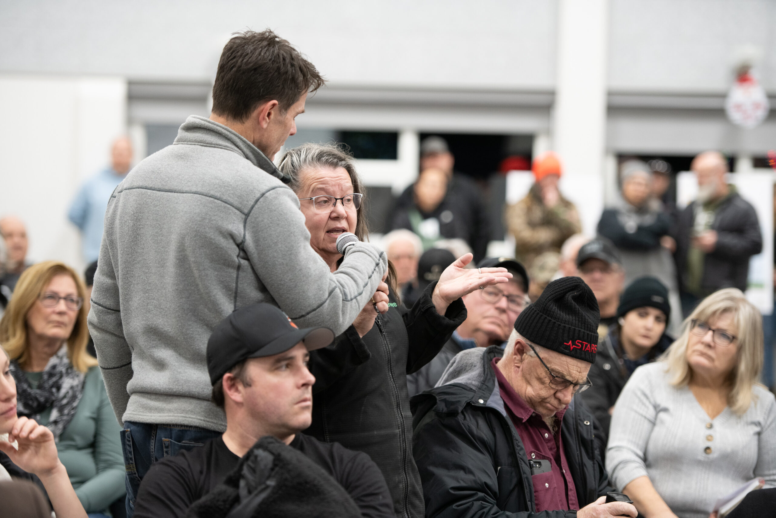 Sam Munckhof-Swain, Director, Community Partnerships with Enbridge, responded, “We can absolutely read this room, right? But what I will say is that there’s many people across this region who are in favor of this project. Some of them are here today, right? And (it is) pretty intimidating to stand up.”