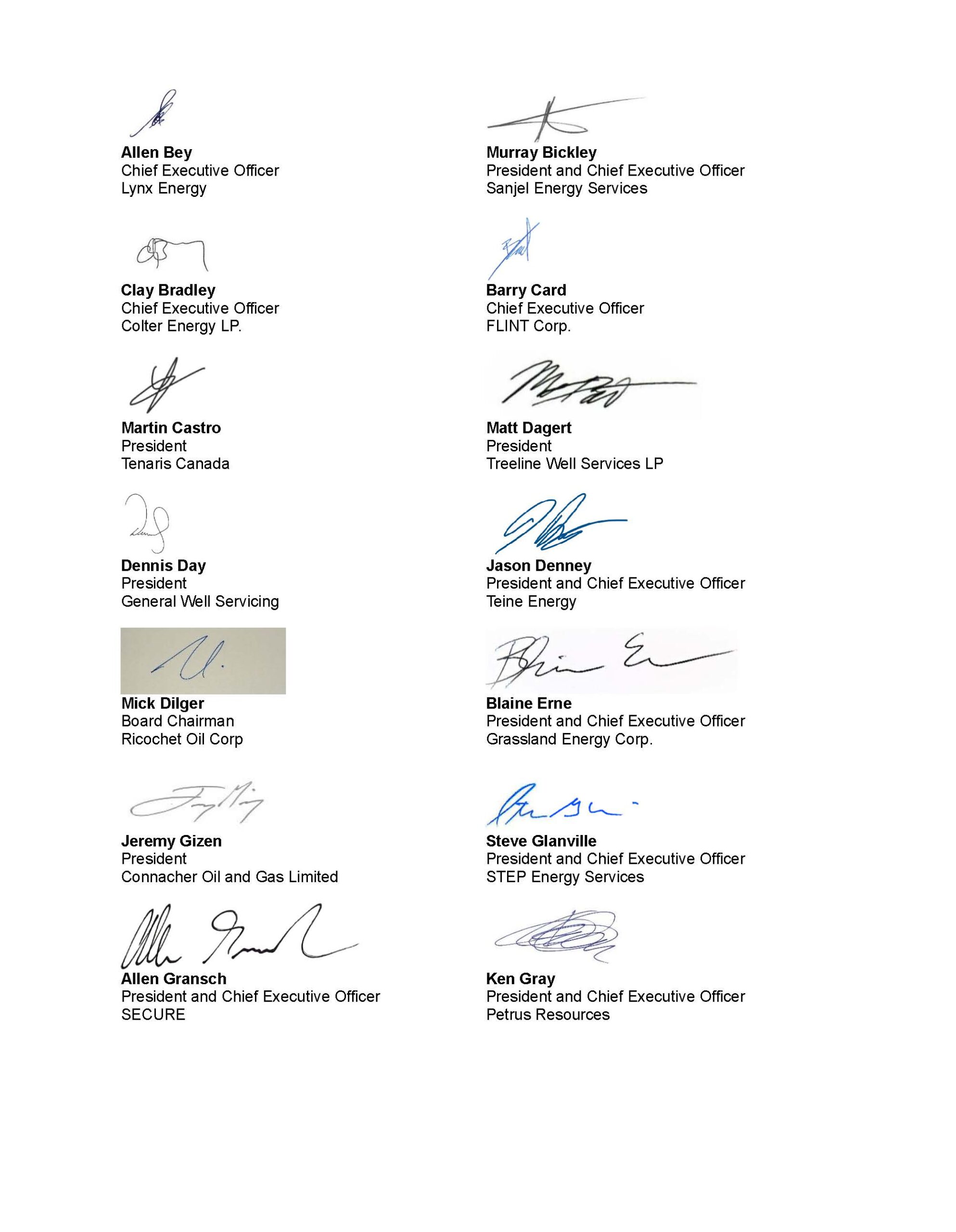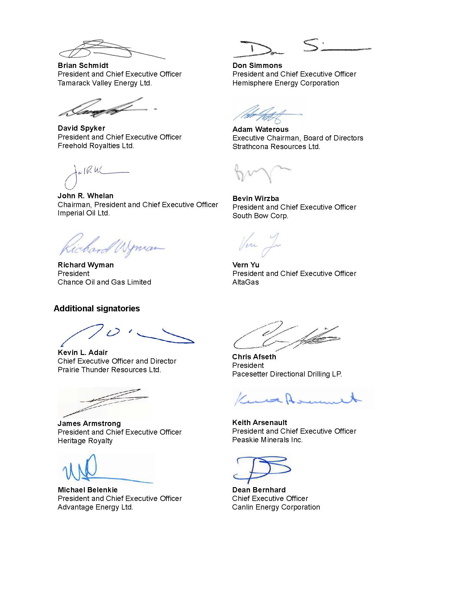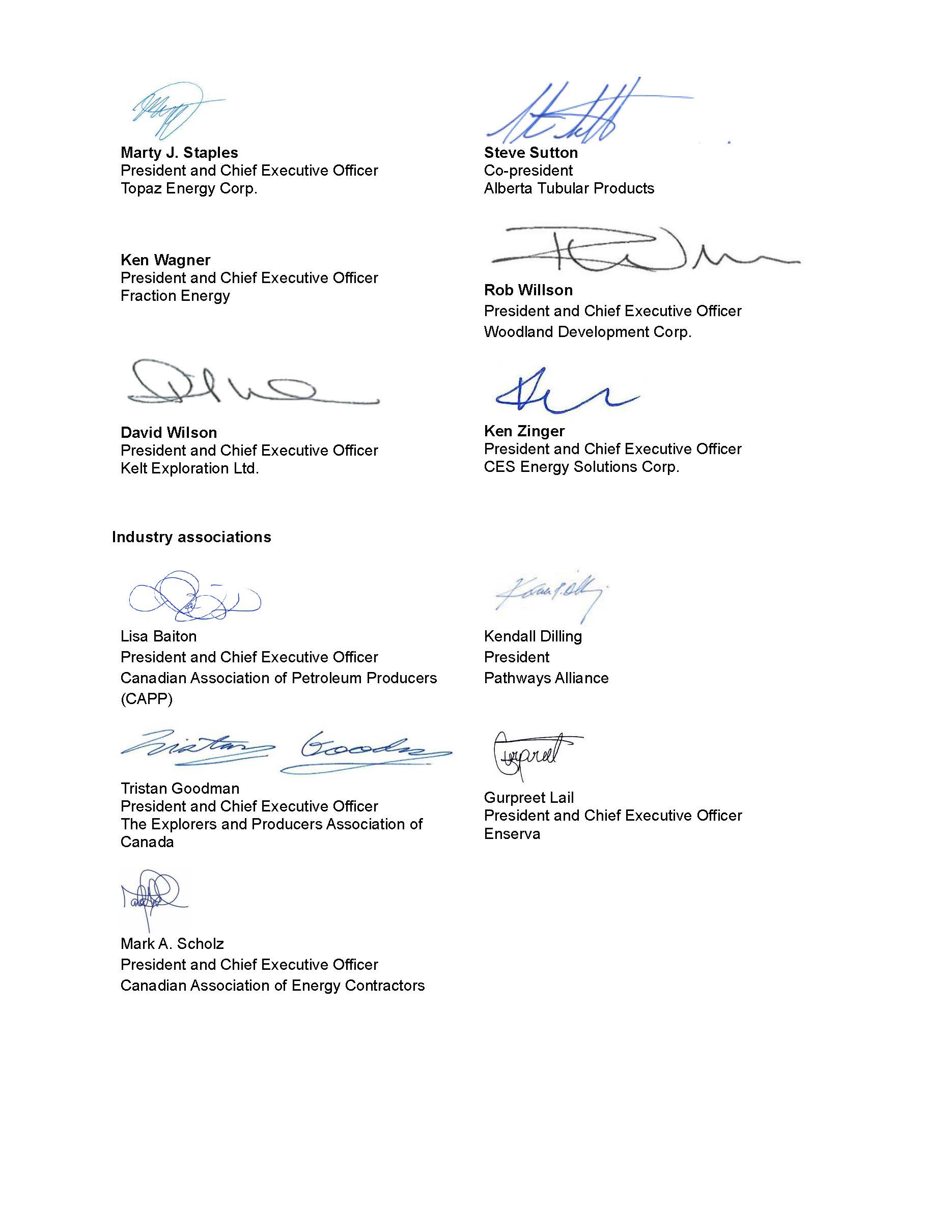 As Parliament resumes for the Fall sitting, the energy industry remains committed to working with you, your cabinet, and the provinces on an urgent basis to achieve the energy sector’s potential for the good of Canada. Together, Canada can become the global energy superpower we all envision. We look forward to your response.