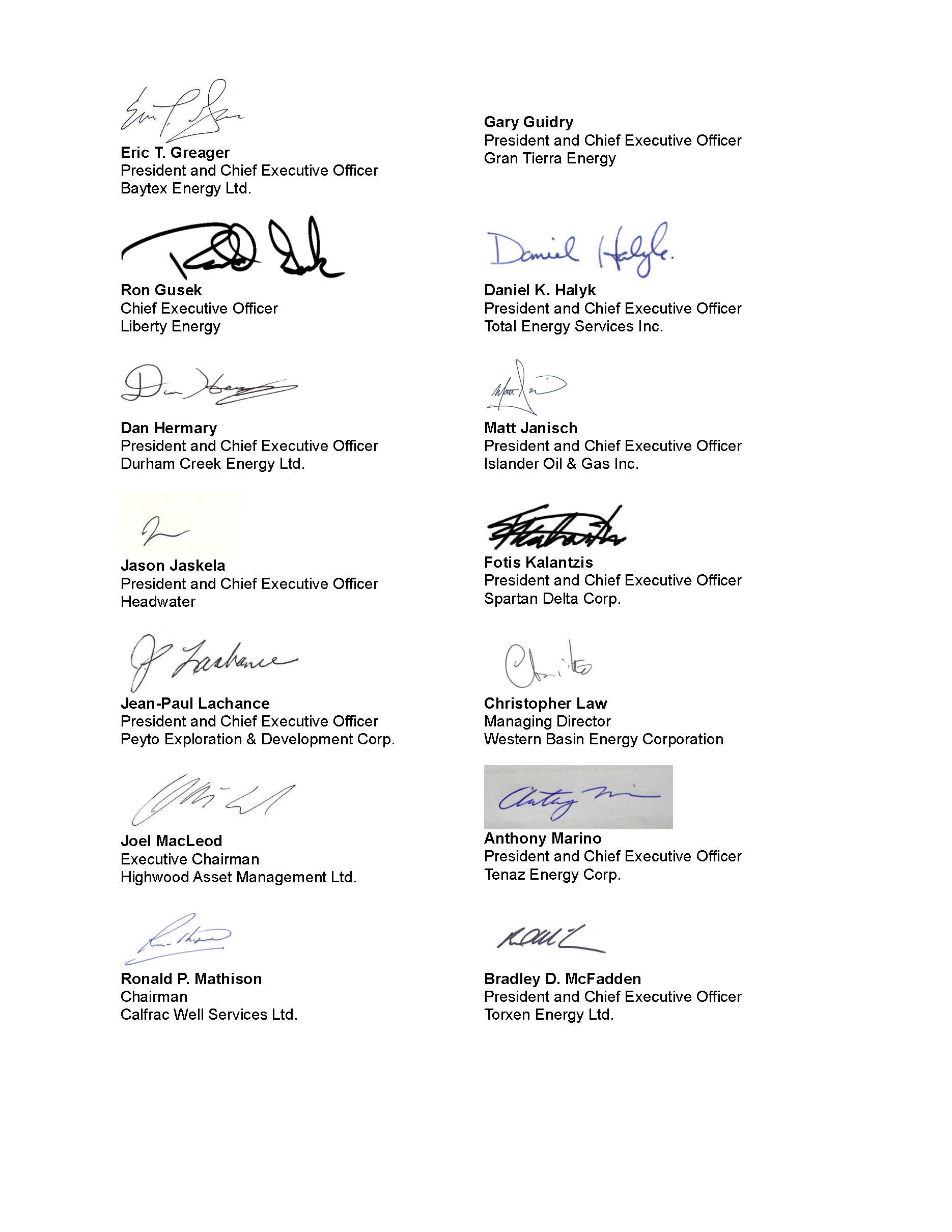 Our call to action is urgent, with persistent indicators that the Canadian economy is moving in the wrong direction. The need to improve productivity and create jobs requires swift and decisive action. Canada is blessed with an enviable abundance of oil and natural gas resources and has the expertise to develop them in a manner consistent with environmental responsibility, social values, and working with Indigenous groups for the benefit of Canada and Canadians. As leaders of this sector, we have consistently advocated for the changes required to unwind the past decade of increasing policy complexity and uncertainty that led to delayed investments, lost opportunities and a competitive disadvantage on the global energy stage.