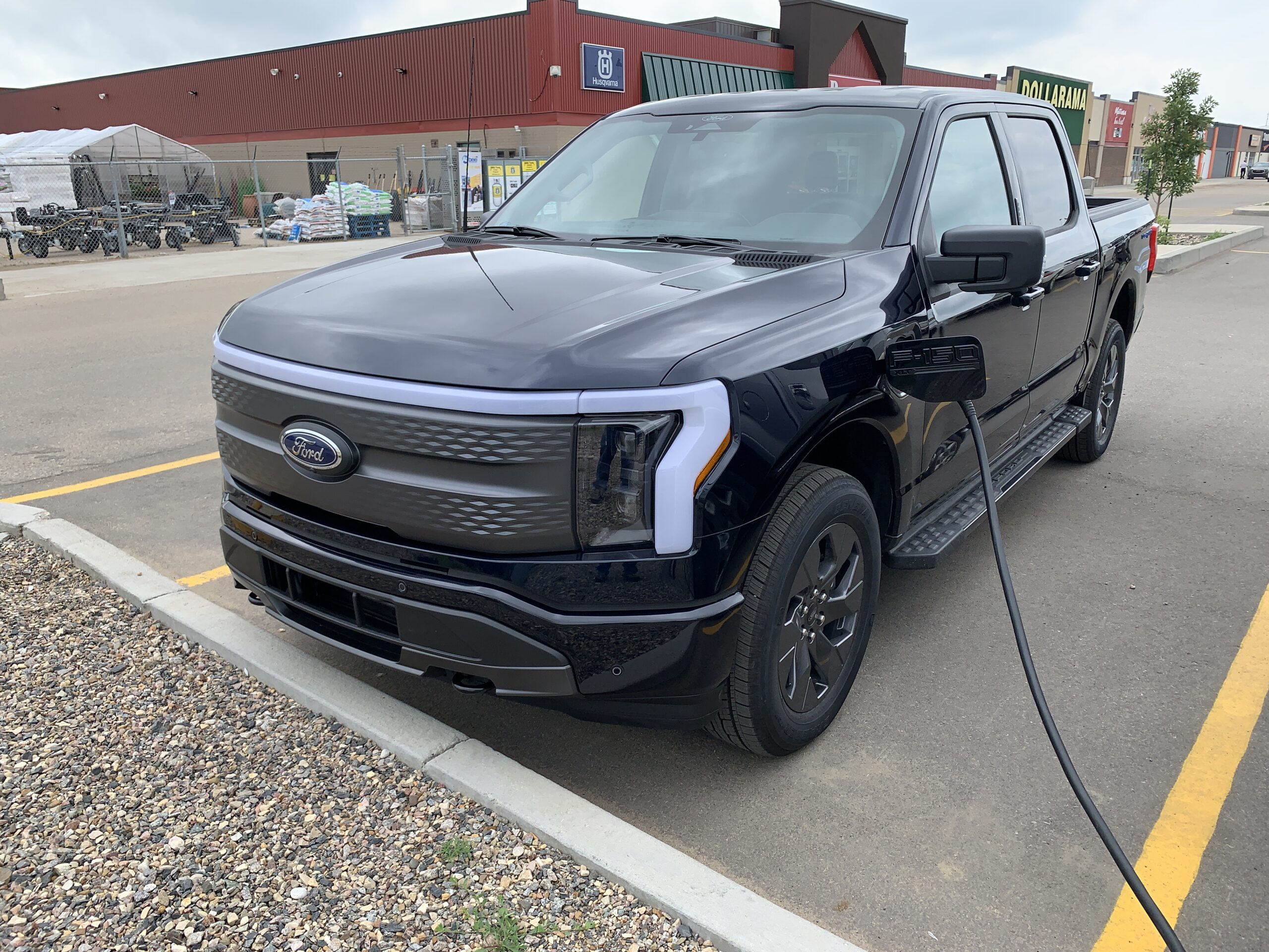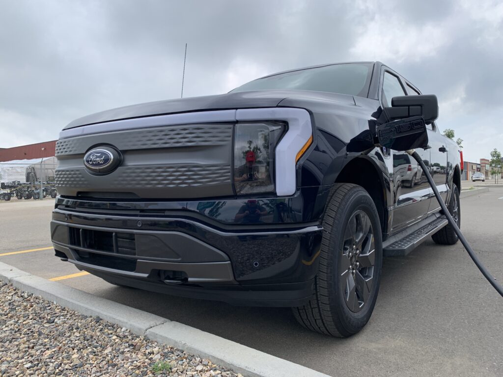 On July 5, the first Ford F-150 Lightning was seen in the wild, charging at Estevan’s Peavey Mart.