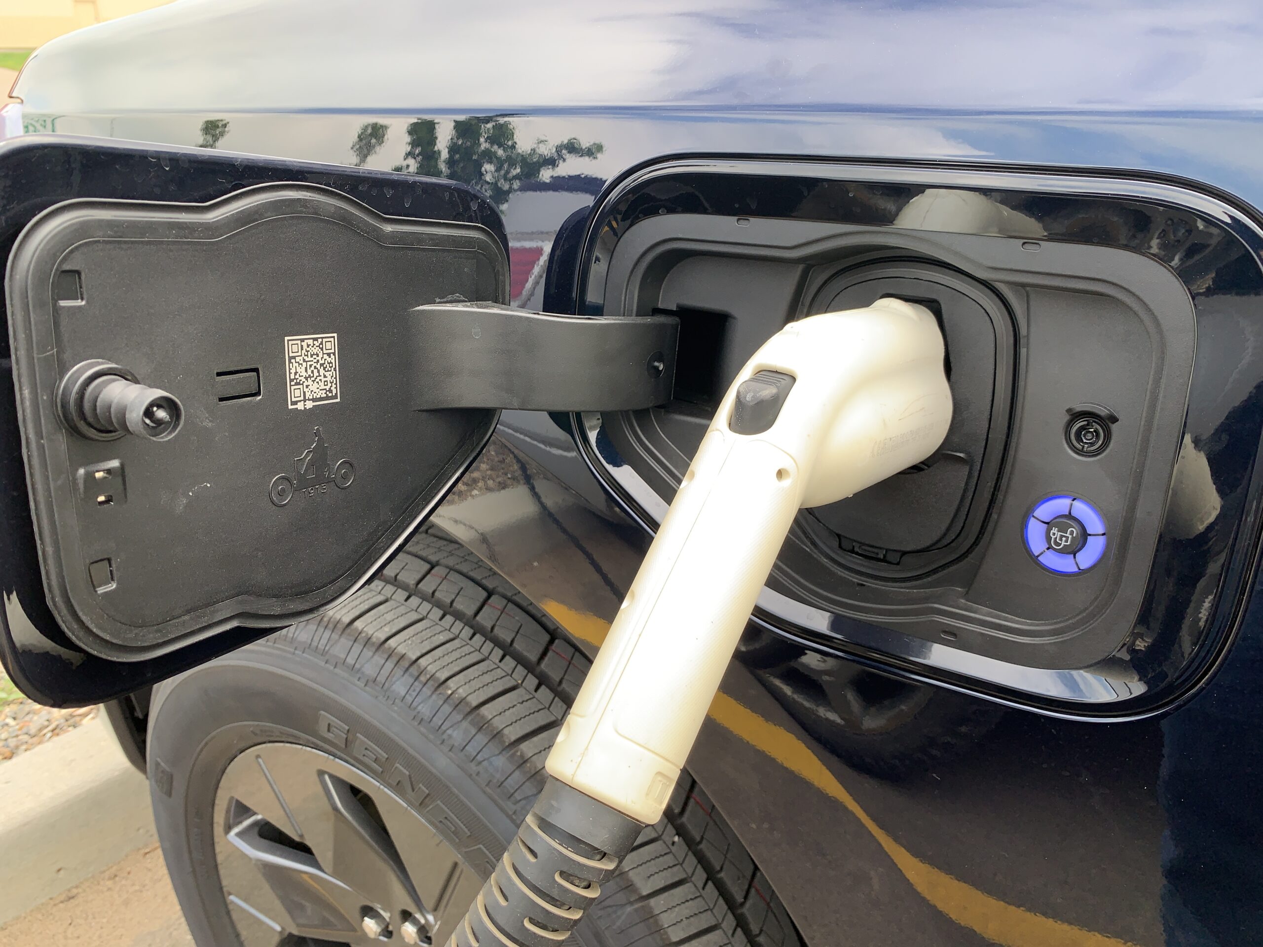 The Denali did double the distance (155.8 miles), still had a quarter tank left, and got 8.9 miles to the U.S. gallon (3.78 litres). It refilled 17.3 gallons of fuel in a few minutes for a cost of US$93.89 The F-150 charged to 75 per cent in 45 minutes on the DC quick charger in a Target parking lot. The electricity cost US$27 for a charge up to 75 per cent, for half the distance, 86 miles. They did not have the time to charge it to 100 per cent.