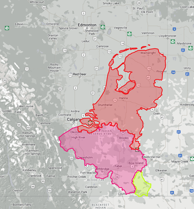 Alberta’s wind power in installed across an area larger than the Netherlands (red), Belgium (pink) and Luxemburg (green) combined. www.thetruesize.com
