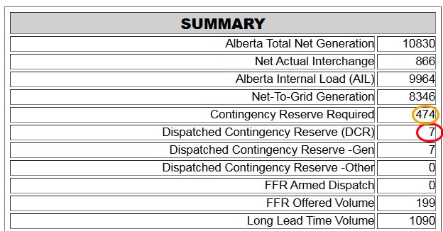 Also, at 1:36 p.m. on Oct. 18, Alberta’s dispatched contingency reserve fell dangerously low, to just 7 megawatts, when the requirement was for over 474.