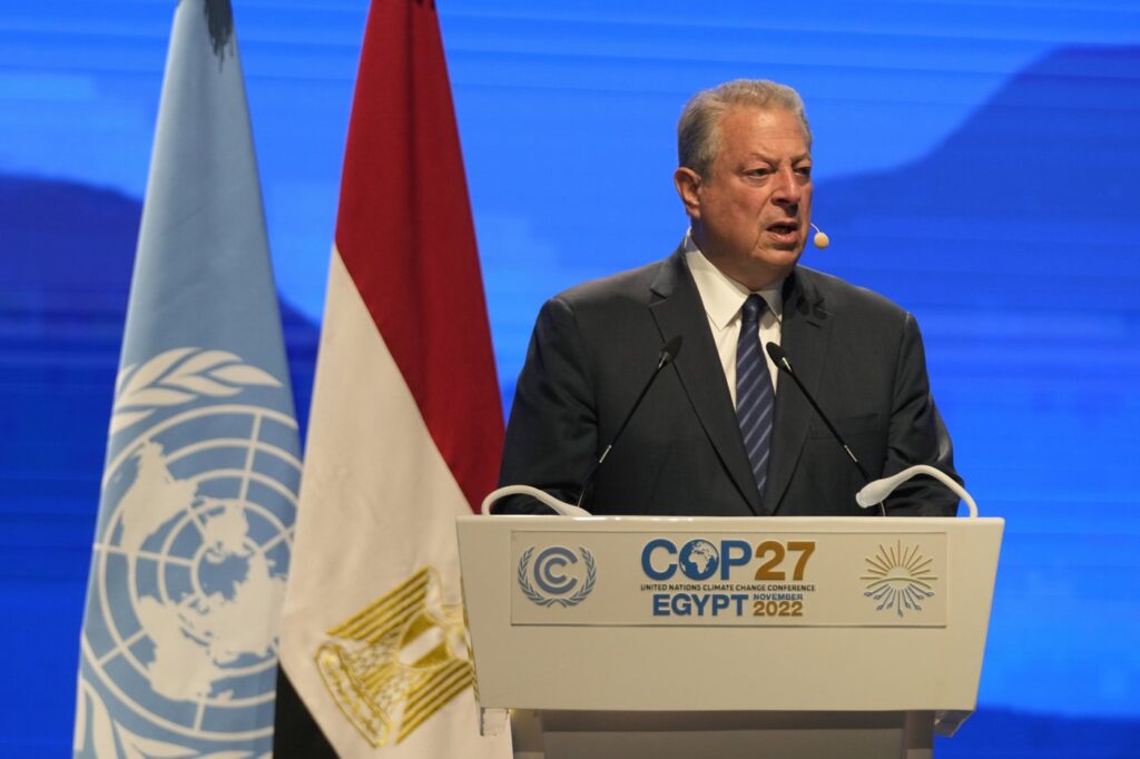 Former U.S. Vice President Al Gore speaks during a session at the COP27 U.N. Climate Summit, Wednesday, Nov. 9, 2022, in Sharm el-Sheikh, Egypt. (AP Photo/Peter Dejong)