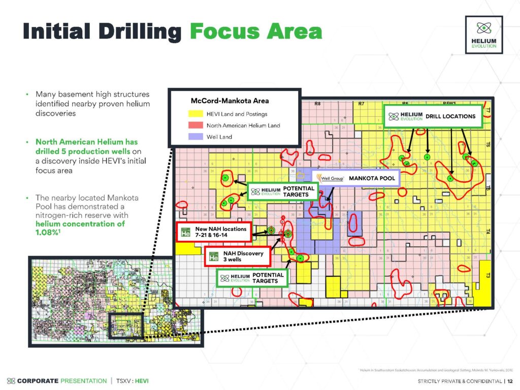 That presentation noted their land base “surrounds what appears to be a successful North American Helium discovery. North American Helium has drilled five production wells on a helium structure adjacent to HEVI’s initial drilling targets.”