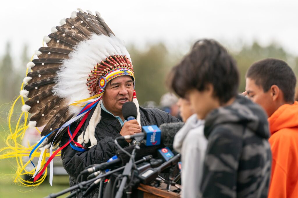 Federation of Sovereign Indigenous Nations Chief Bobby Cameron speaks during a Federation of Sovereign Indigenous Nations event at James Smith Cree Nation, Sask. on Sept. 8, 2022. Chiefs in Saskatchewan sent a message to the provincial government to scrap a controversial bill or the new year could start with blockades. THE CANADIAN PRESS/Heywood Yu