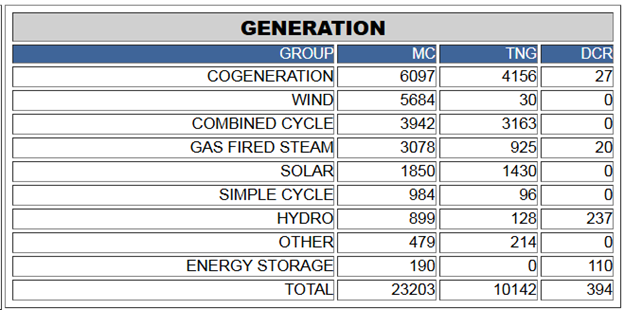 Solar, however, was having a good day, with 1,430 megawatts output from 1,850 megawatts nameplate capacity. Several solar farms were near maximum output.