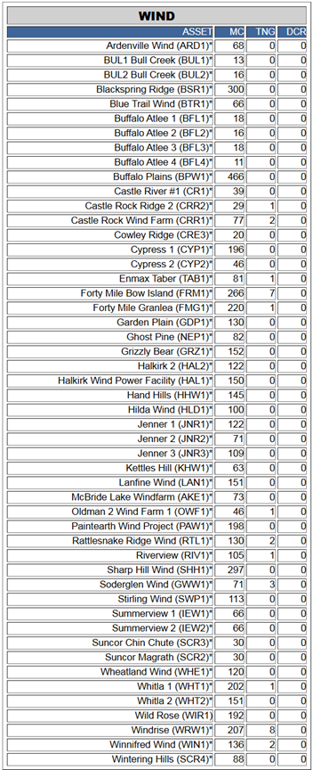According to data from the Alberta Electric System Operator (AESO), wind output was 30 megawatts out of a rated capacity of 5,684 megawatts. And at 11:17 it fell to 28 megawatts.