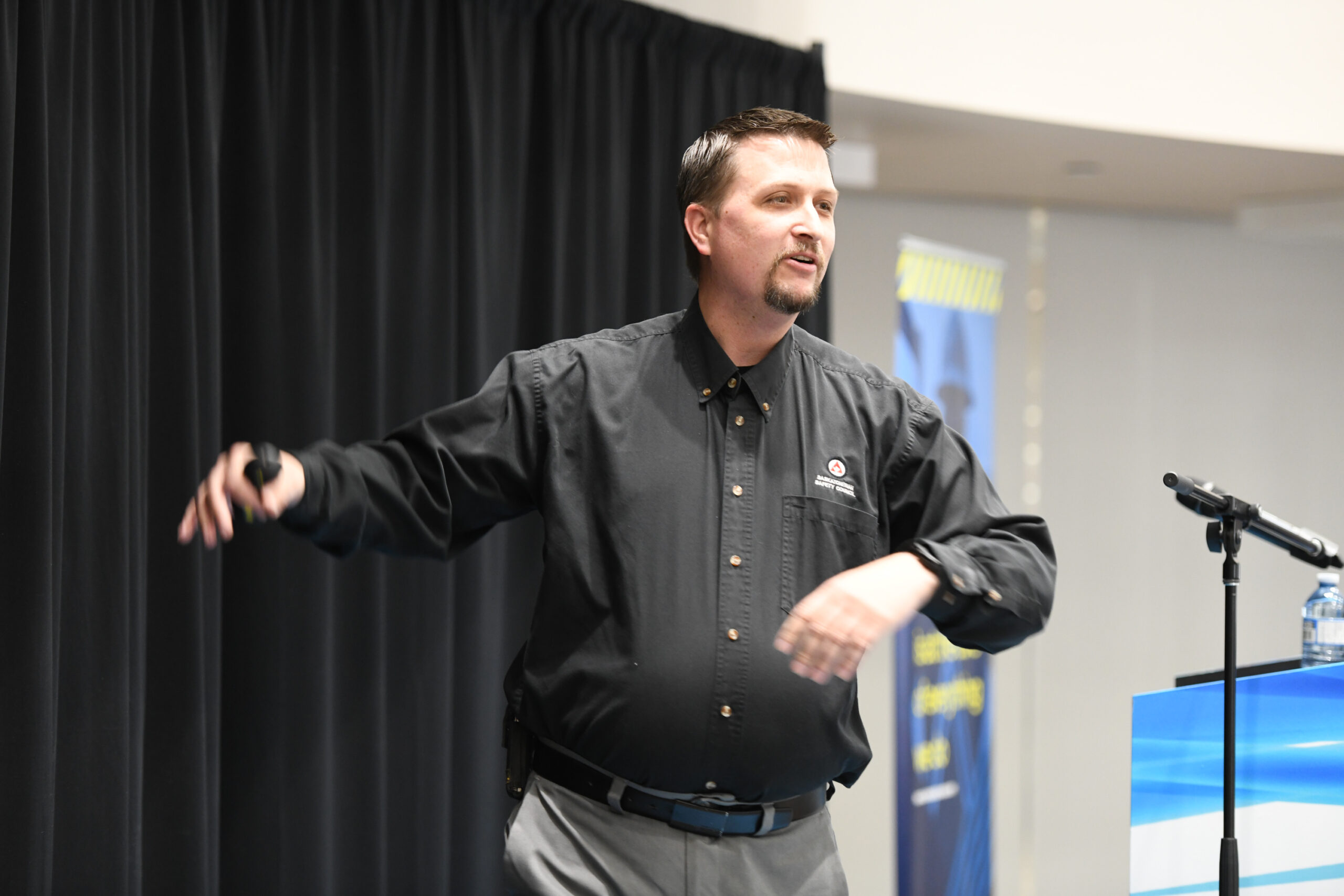 IWS partner Brian Crossman introduced Ryan Jacobson, CEO of the Saskatchewan Safety Council, noting, “Today’s topic is driving. In our line of work. It’s by far the most dangerous part of our day. By show of hands, who in this room has lost a family member, friend or co worker in a vehicle accident? Yeah, and it happens all the time.