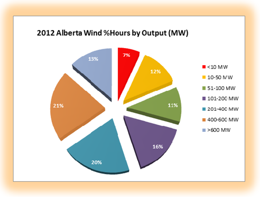 About that time I found the article entitled Alberta – A Case Study in Wind Energy Management I have attached a copy of that report (Alberta – A Case Study in Wind Energy Management – from The Black Swan Blog) as it further highlights what you reported in your “Fool me” article – that wind power is very intermittent and unreliable. The pie chart below is from the case study