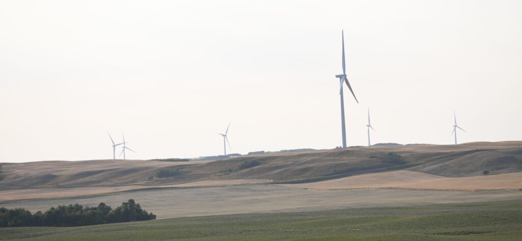 Alberta’s Bull Creek Wind Farm, touching the Saskatchewan border between Provost and Macklin. On Sept. 12, the day of the photo, most of the turbines were not turning. Photo by Brian Zinchuk