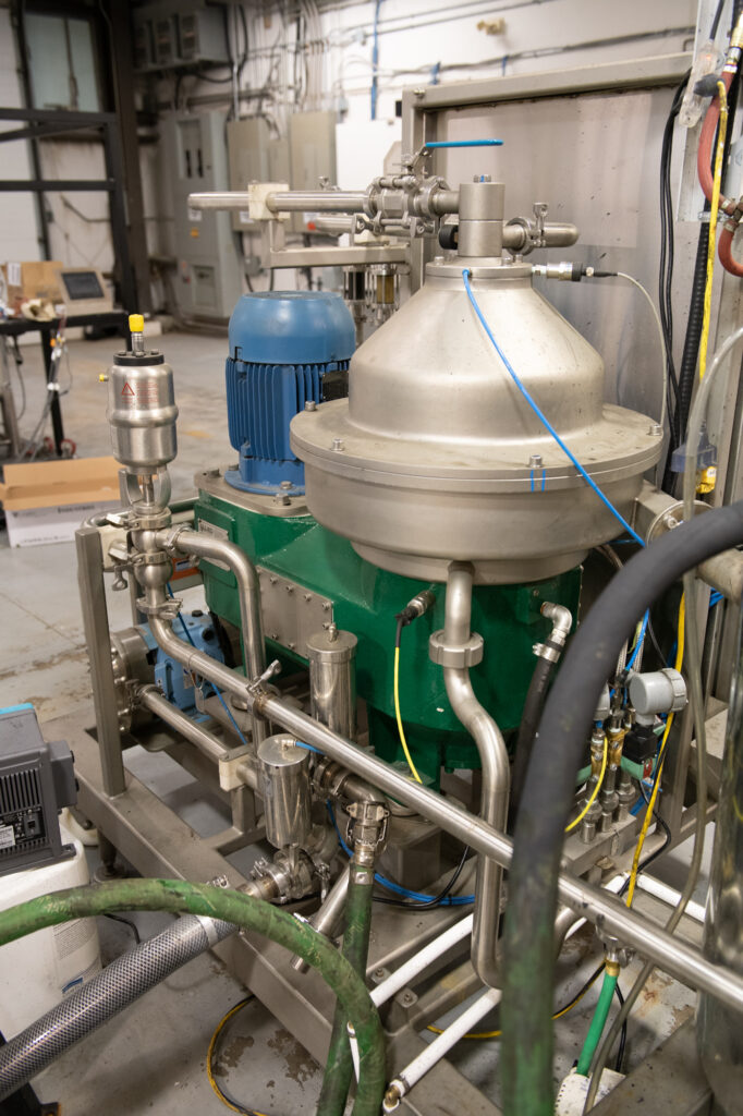 The brine enters the pilot plant from the left, goes through two centrifuges in the middle, and comes out on the right. Photo by Brian Zinchuk