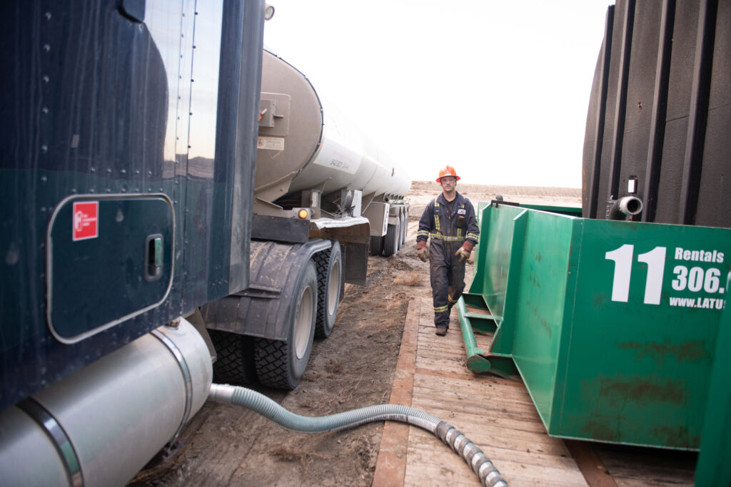A driver from Streamline Oilfield loads brine samples near Torquay. Photo by Brian Zinchuk