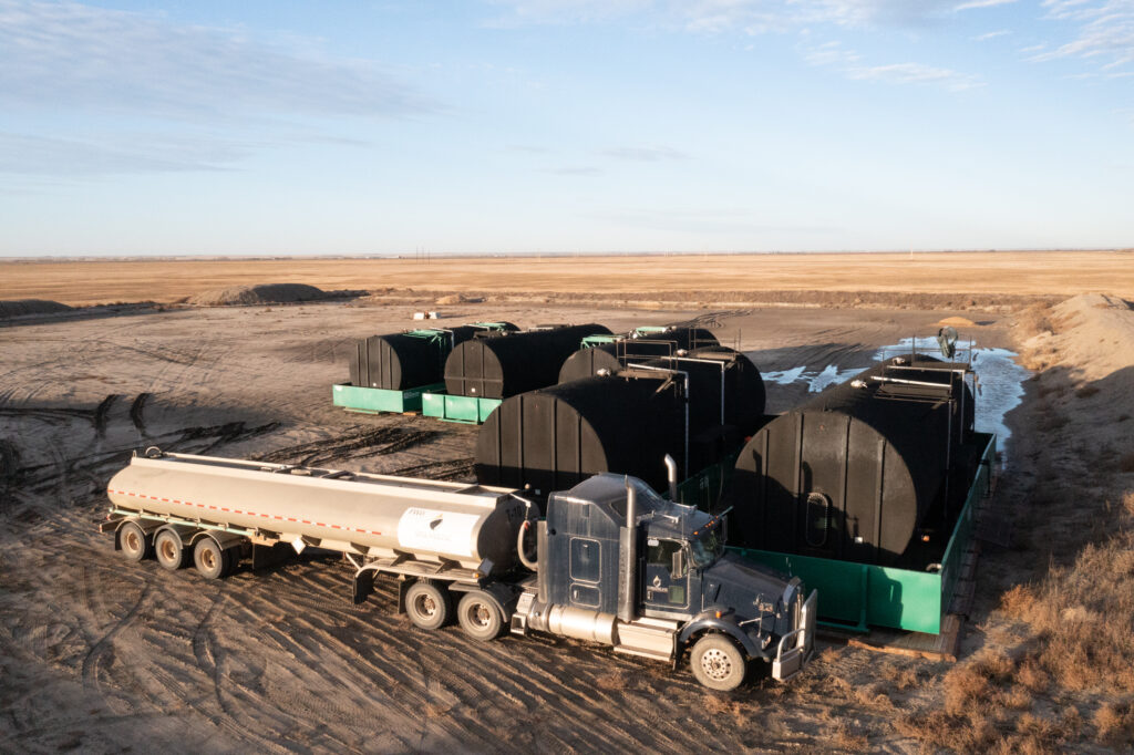 Streamline Oilfield hauled lithium brine samples for this, the first lithium well drilled in Canada. That well was drilled in September, 2021, and brine samples have been stored onsite since then. Photo by Brian Zinchuk