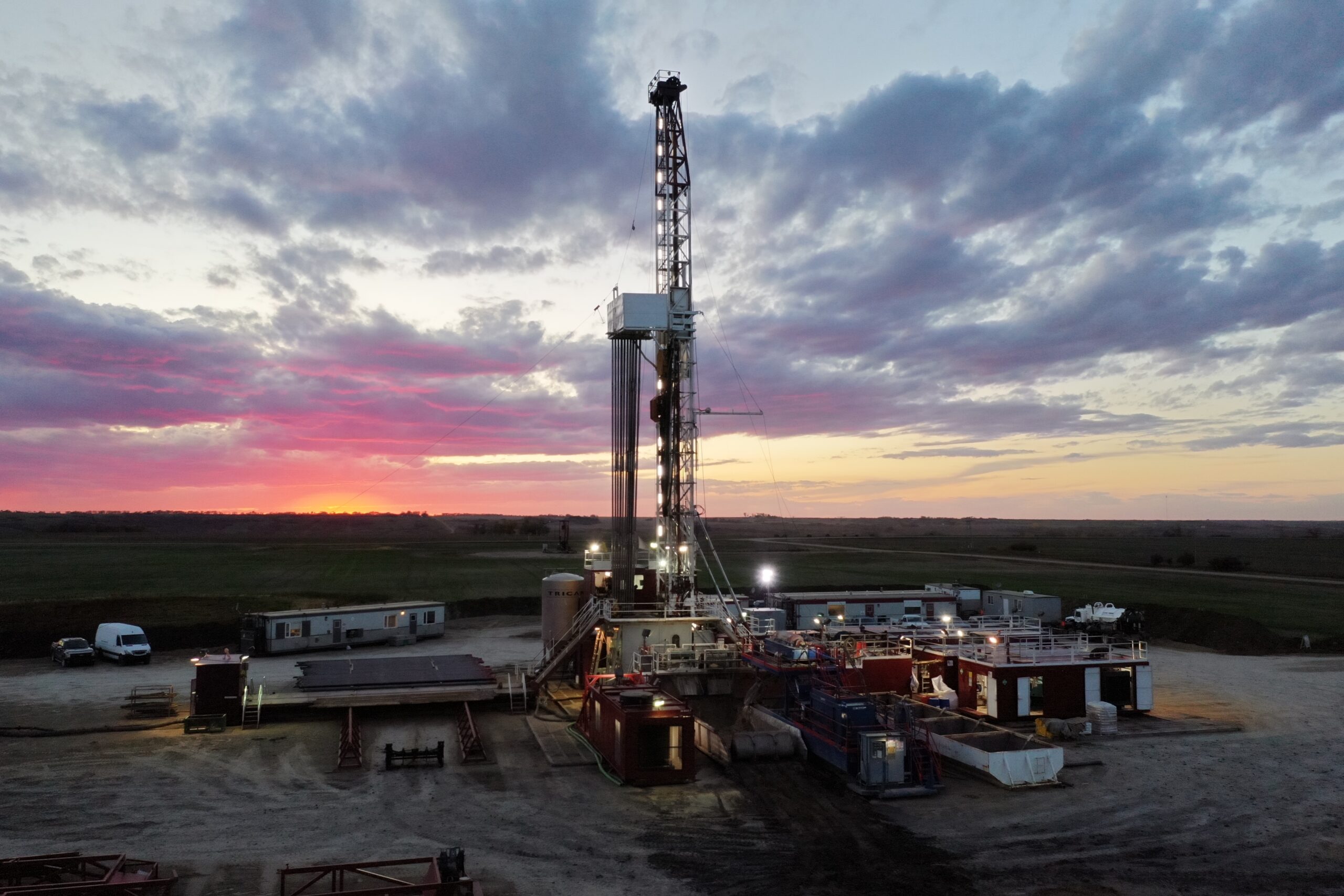 Stampede Drilling Rig 8, drilling for Hub City Lithium on Aug. 13, 2024. Photo by Brian Zinchuk