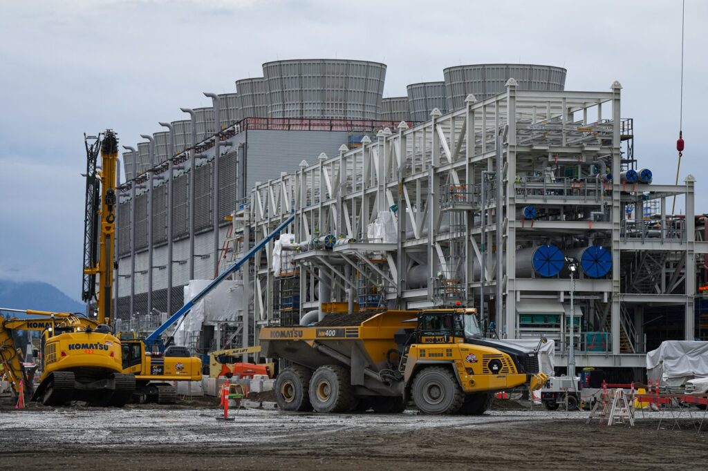 Cooling towers used to dissipate heat generated when natural gas is converted into liquefied natural gas are seen under construction at the LNG Canada export terminal, in Kitimat, B.C., on September 28, 2022. After long enjoying a reputation as a “bridge fuel” capable of helping the world achieve its climate goals, natural gas is losing some of its environmental lustre – and that has implications for Canada’s energy sector. THE CANADIAN PRESS/Darryl Dyck