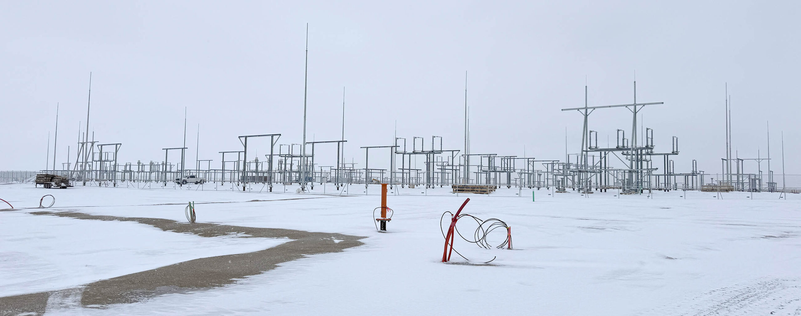 This is the Tableland switchyard, under construction west of Estevan. It will be the point where an additional 500 megawatts of power can be sent or recieved to or from the US. The photo was taken on Jan. 20, 2026. Photo by Brian Zinchuk