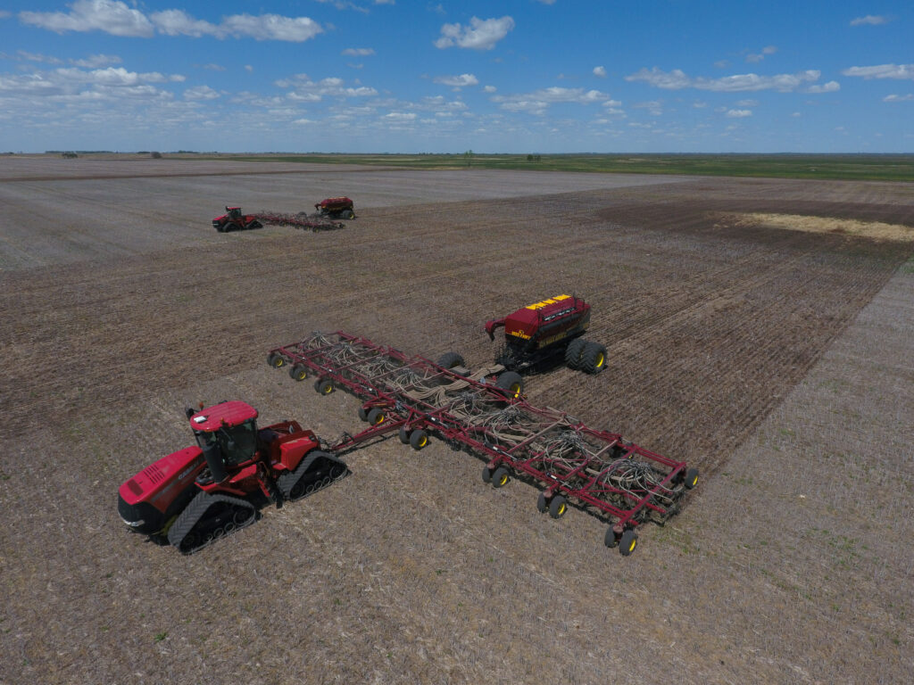 How big will the battery pack have to be for a 620 horsepower tractor like these? The size of the air cart? And where do you charge it? Photo by Brian Zinchuk
