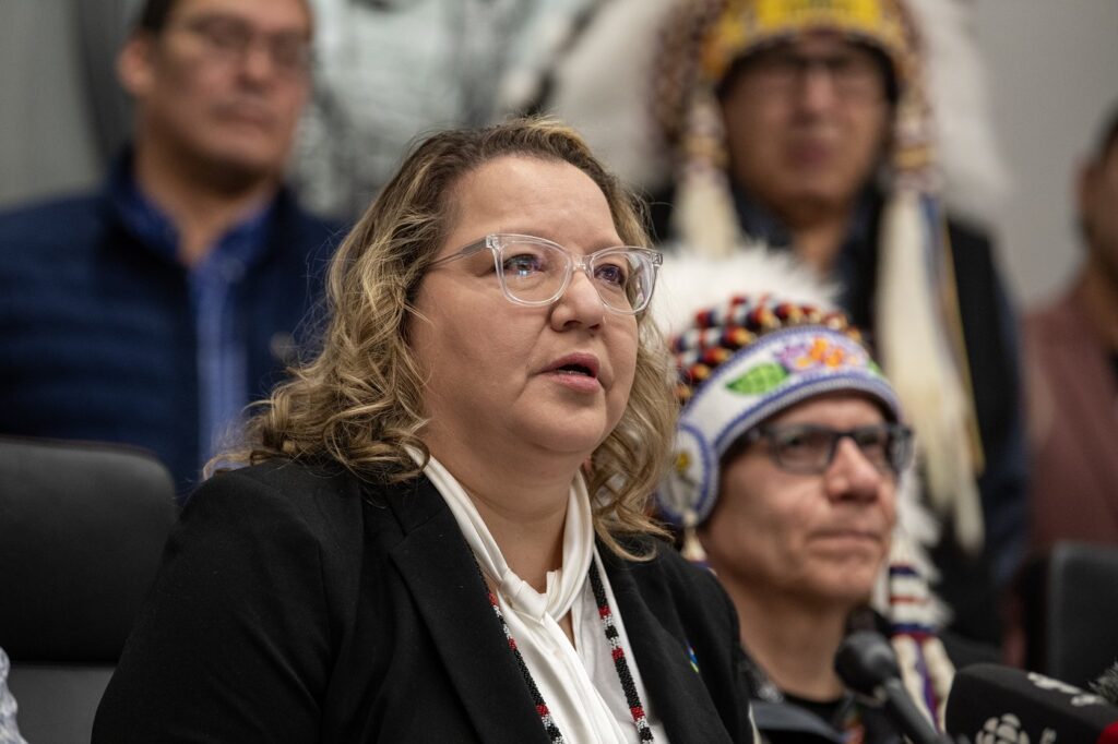 The national chief of the Assembly of First Nations is trying to make inroads with Conservative Leader Pierre Poilievre, hoping to forestall the tensions and angst that marked the party’s last time in power. Cindy Woodhouse Nepinak speaks during a media event hosted by the Federation of Sovereign Indigenous Nations, in Saskatoon, Sask., Thursday, Feb. 1, 2024. THE CANADIAN PRESS/Liam Richards