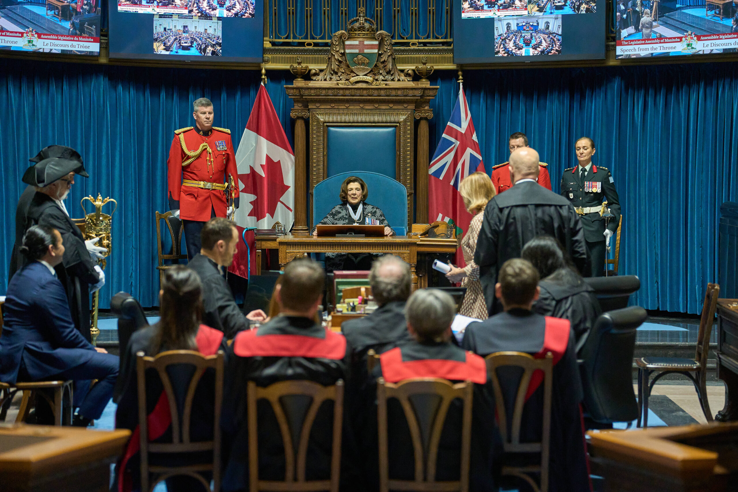 Manitoba Lt.-Gov. Anita Neville delivers the Speech from the Throne, at the Manitoba Legislative Building in Winnipeg, Tuesday, Nov. 18, 2025. THE CANADIAN PRESS/David Lipnowski