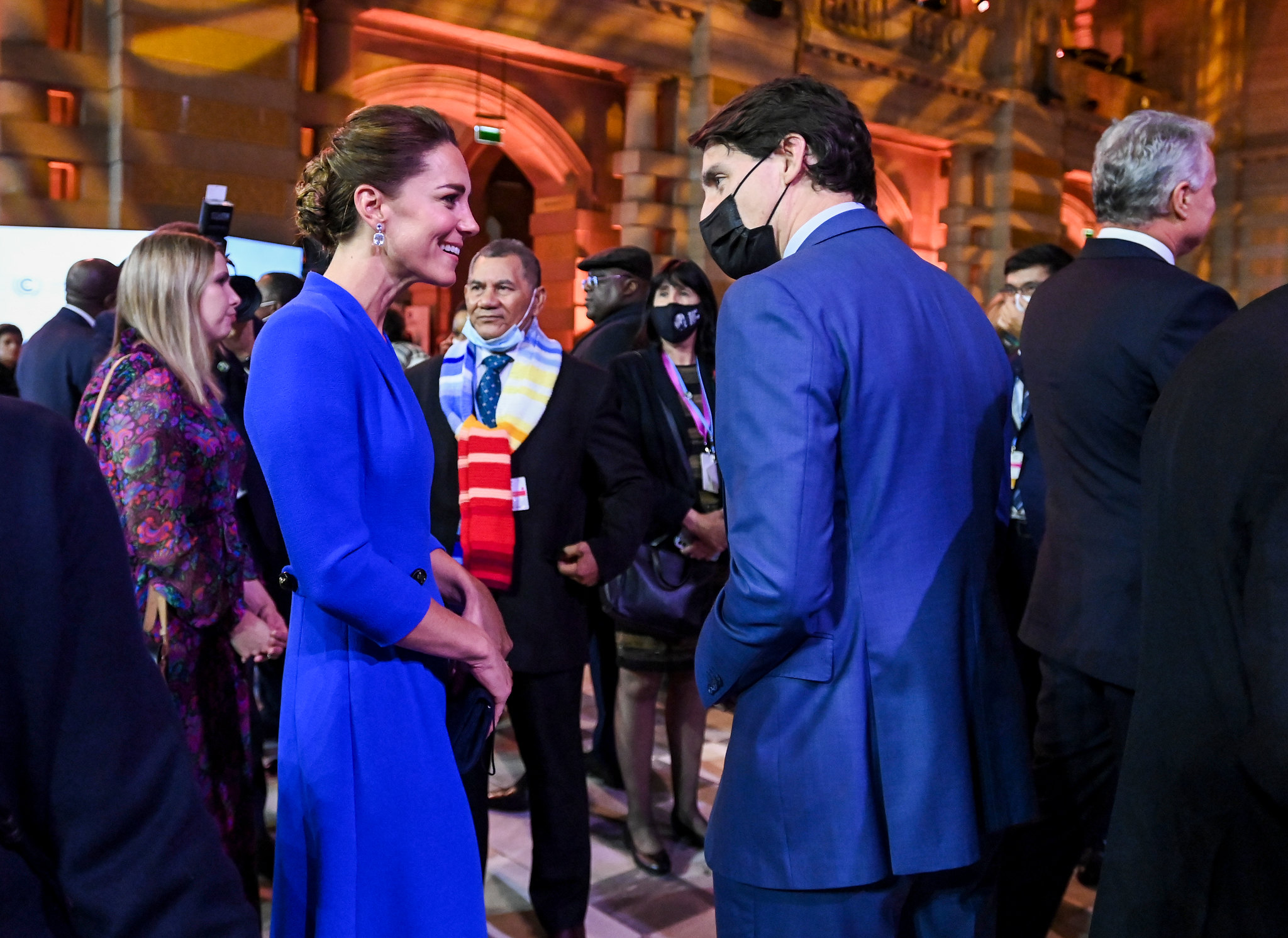 Catherine, Duchess of Cambridge, and Justin Trudeau, Prime MInister of Canada, talk at a COP26 reception at the Kelvingrove Art Gallery, Glasgow. Photograph: Karwai Tang/ UK Government