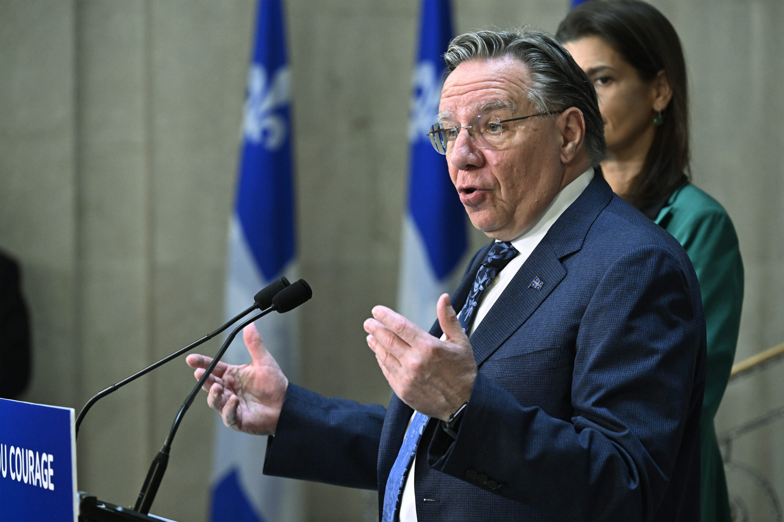 Quebec Premier Francois Legault speaks at a news conference at his office in Quebec City, Friday, June 6, 2025. THE CANADIAN PRESS/Jacques Boissinot