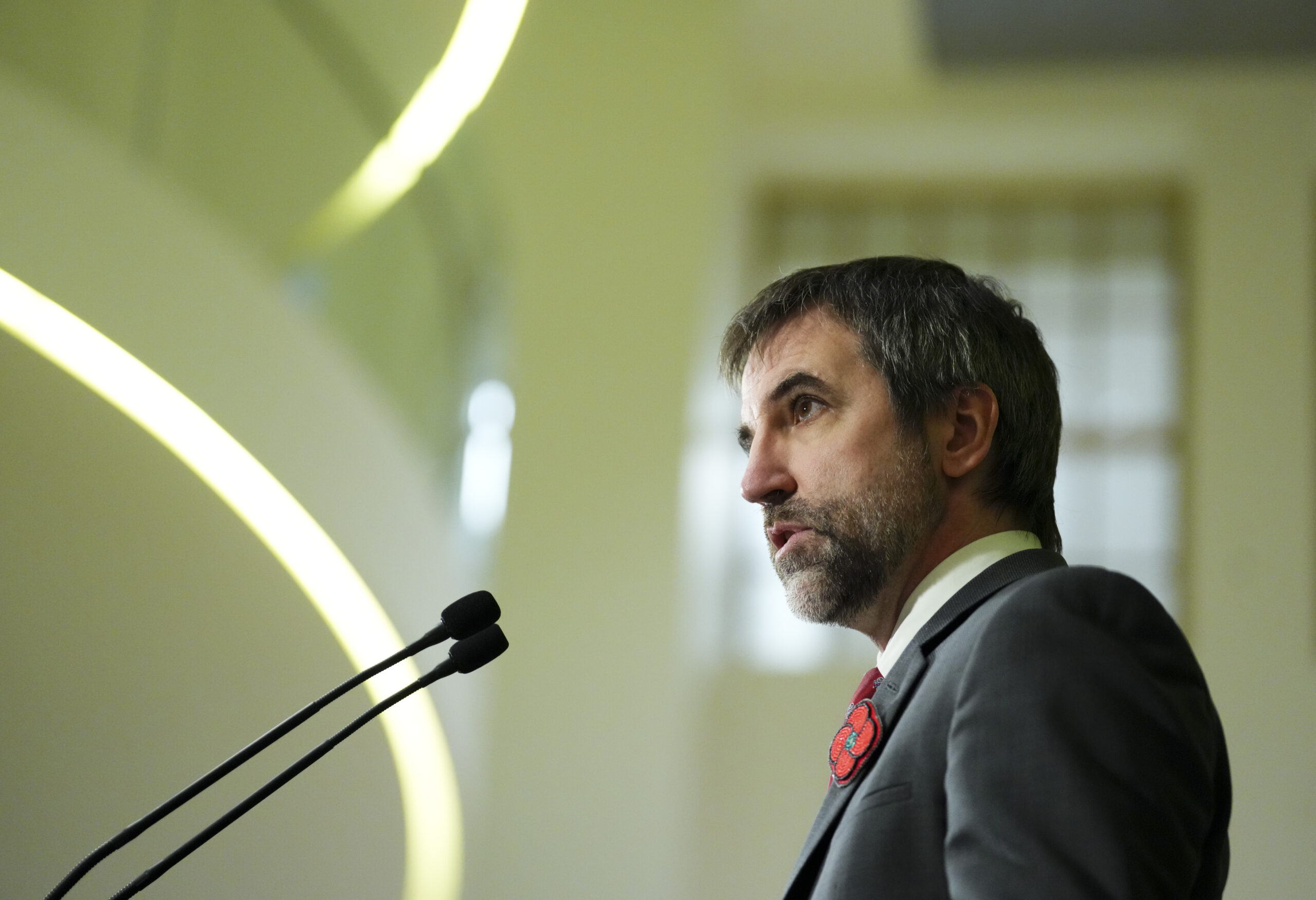 Minister of Environment and Climate Change Steven Guilbeault joins Minister of Energy and Natural Resources Jonathan Wilkinson and fellow colleagues as they hold a press conference in Ottawa on Monday, Nov. 4, 2024. Oil and gas producers in Canada will be required to cut greenhouse gas emissions by about one-third over the next eight years under new regulations being published today by Guilbeault. THE CANADIAN PRESS/Sean Kilpatrick