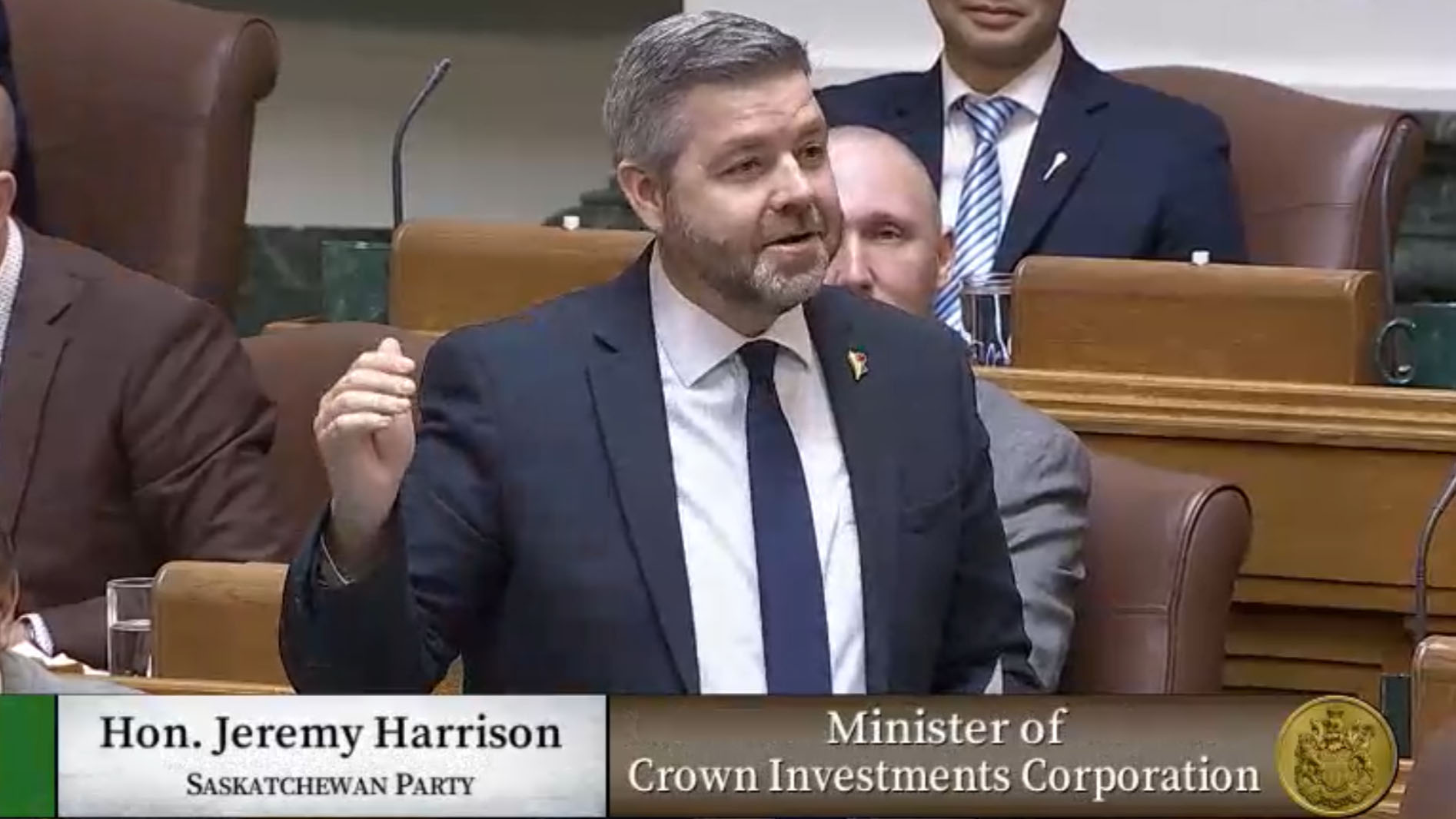 Minister of Crown Investments Corp. and Minister Responsible for SaskPower Jeremy Harrison on March 26. Screen capture via Legislative Assembly of Saskatchewan