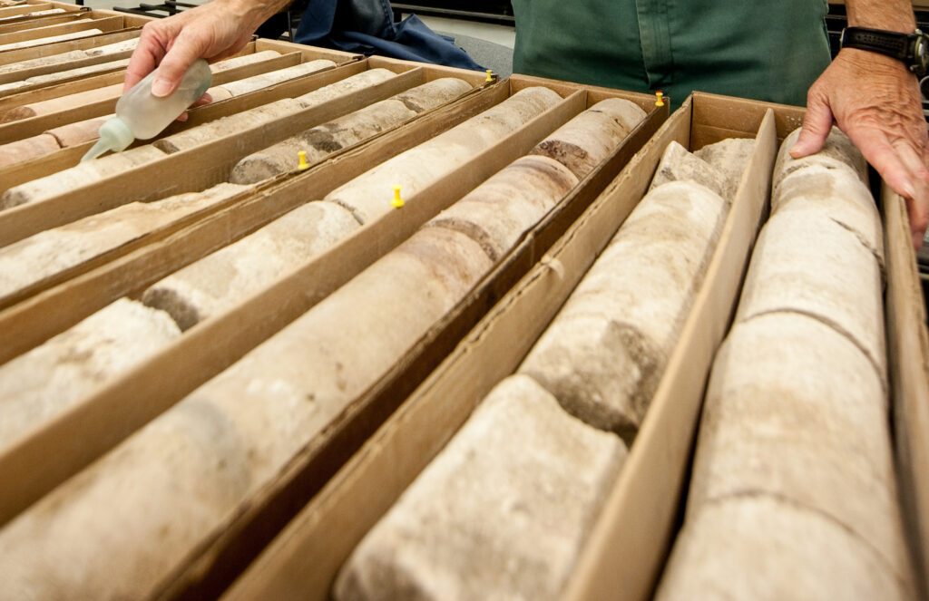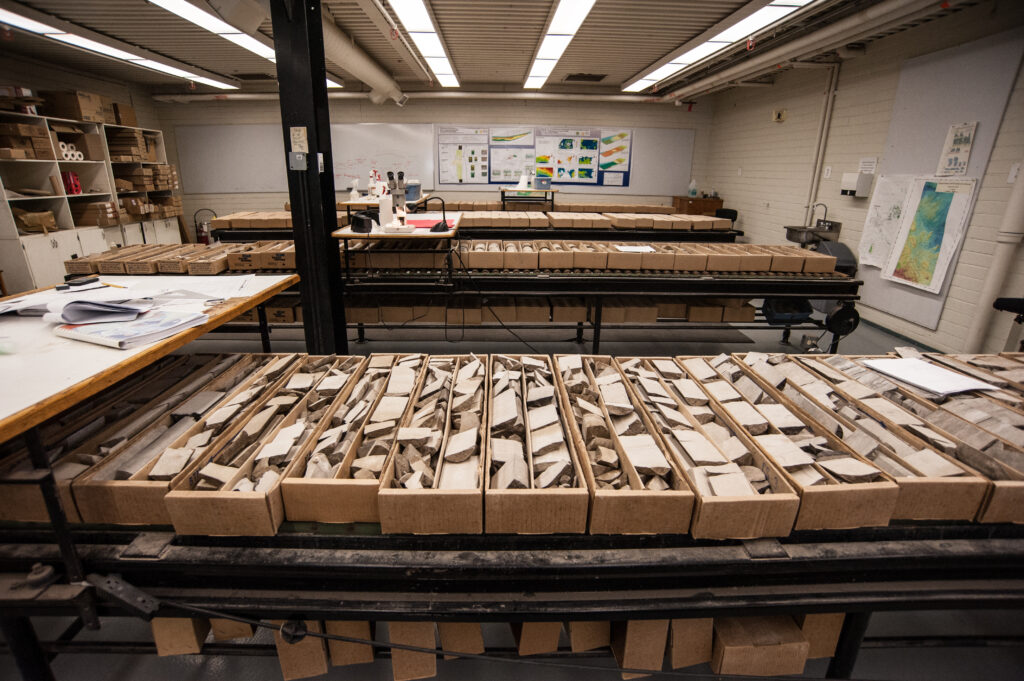 These boxes of core show millions of years of sedimentation, from being at the bottom of an ocean. It’s literally a record of climate change on a continual basis over a half billion years. Every geologist knows this. Photo by Brian Zinchuk