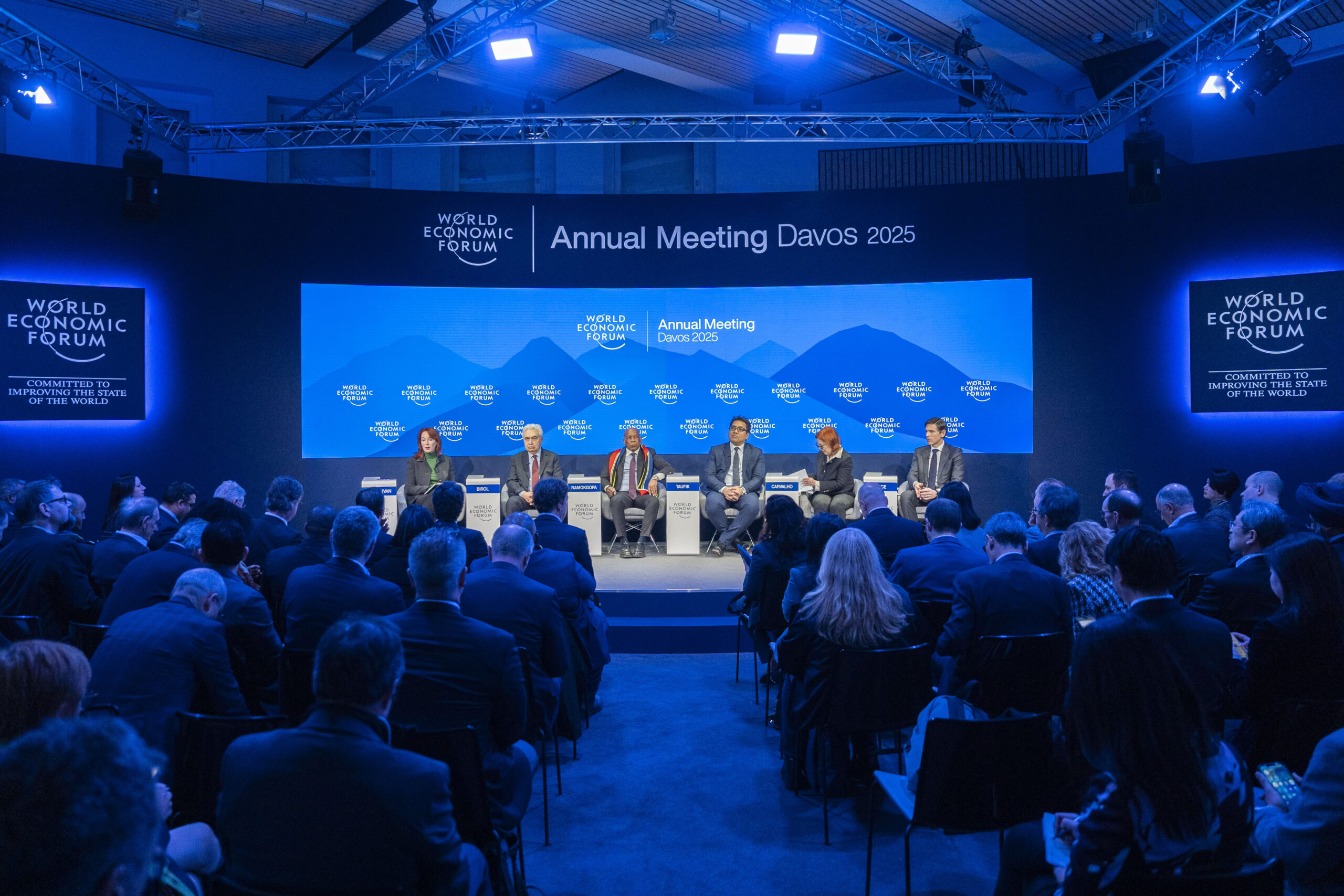 Fatih Birol, Executive Director, International Energy Agency, Paris; Jonathan Price; Kgosientso Ramokgopa, Minister of Electricity and Energy of South Africa; Maria da Graça Carvalho, Minister of Environment and Energy of Portugal; Meghan O’Sullivan, Director, Belfer Center for Science and International Affairs, Harvard University, USA; Muhammad Taufik, President and Group Chief Executive Officer, PETRONAS (Petroliam Nasional), Malaysia; speaking in The Geoeconomics of Energy and Materials session at the World Economic Forum Annual Meeting 2025 in Davos-Klosters, Switzerland, 21/1/2025, 09:30 – 10:15 at Congress Centre – Aspen 2. Stakeholder Dialogue. Copyright: World Economic Forum / Valeriano Di Domenico