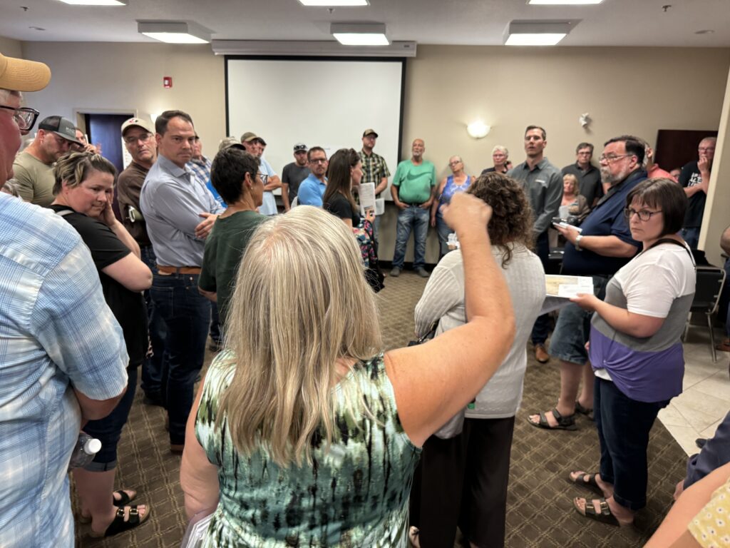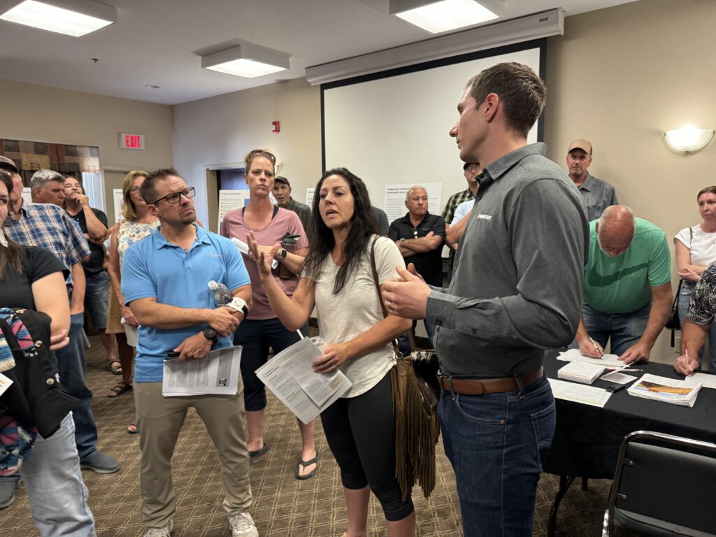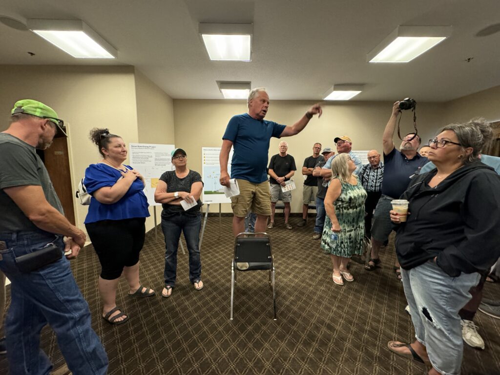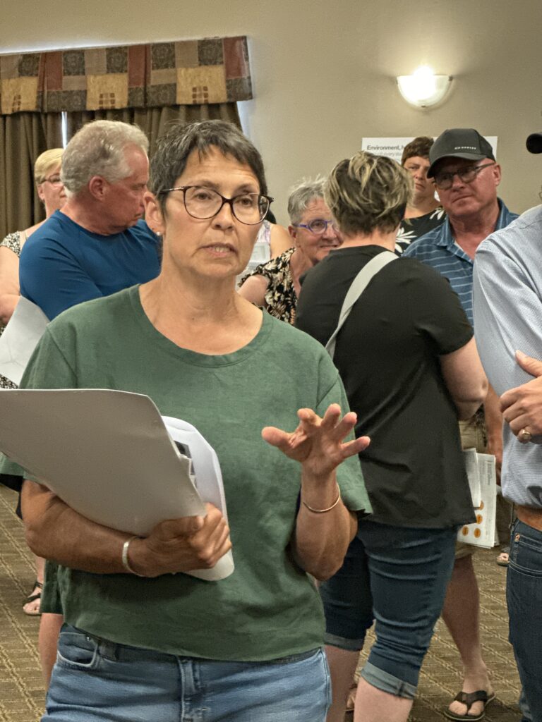 Several of those present felt that the rural municipal council should have pressure applied to it in opposition to any setback changes and the project in general. There was at least one councilor and the reeve of the RM of Weyburn present, but they didn’t speak. Taylor said, “It’s not their project. We’re applying to them.”